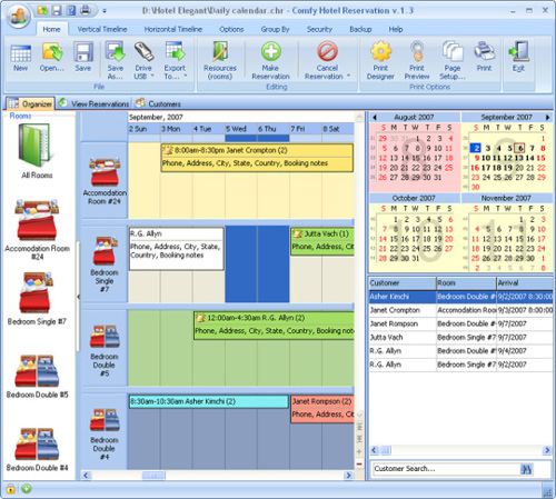 Comfy Hotel Reservation có thể tối đa hóa lợi nhuận và giảm thiểu được các phòng trống cho các khách sạn, nhà nghỉ. Quản lý khách hàng thường xuyên và ghi lại những sở thích của khách hàng giúp bạn có thể giữ được họ. Tất cả các profile dữ liệu đều được bảo vệ với mật khẩu để tránh truy cập bất hợp pháp. Ngoài ra, chương trình này còn có tính năng Auto Backup, cho phép bạn lưu lại toàn bộ dữ liệu vào một file nén bảo mật. Quan trọng hơn, dữ liệu từ Comfy Hotel Reservation có thể chuyển thành rất nhiều định dạng khác nhau như MS Outlook, XML, HTML, XLS và TXT. Chương trình này cũng hỗ trợ toàn bộ các phiên bản của Microsoft Windows.