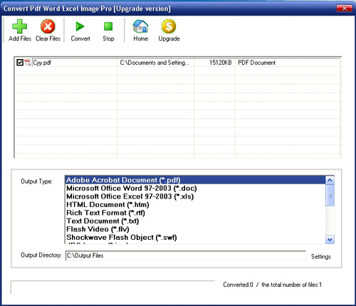 Convert Pdf Word Excel Image Pro là công cụ chuyển đổi chuyên nghiệp và rất dễ sử dụng. Phần mềm này có thể chuyển đổi dữ liệu theo nhóm, các trang web và ảnh để nâng cấp hiệu suất công việc. Với công cụ chuyển đổi mạnh mẽ này, bạn có thể tạo file PDF từ rất nhiều định dạng và chuyển đổi file PDF sang định dạng khác với chất lượng đầu ra tuyệt vời. Bạn có thể chuyển đổi giữa các định dạng dữ liệu văn phòng khác nhau, các trang web và file ảnh. Phần mềm này hỗ trợ rất nhiều định dạng: Word (doc, docx, docm), Pdf, Rtf, Excel (xls, xlsx, xlsm), Powerpoint (ppt, pptx, pptm), Txt, Website(html file), Jpg, Bmp, Gif, Tif, Psd, Wmf, Emf, Tga, Rle, Png,.... Bên cạnh đó, công cụ này còn có thể cho ra định dạng đầu ra FLV và Swf. Nó có thể đồng thời chuyển đổi các định dạng khác nhau sang một định dạng chung. CÁc lựa chọn cài đặt khác được cung cấp để giúp bạn quản lý file đầu ra linh hoạt hơn. Giao diện của ứng dụng này cũng rất rõ ràng và thân thiện với người dùng. Chỉ cần một lần kích, bạn đã có thể thực hiện xong tác vụ chuyển đổi.