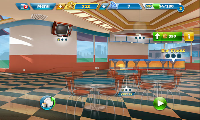 Lắp đặt thiết bị mới, bàn, TV và bóng disco trên tất cả các vị trí này sẽ giúp danh tiếng của nhà hàng tăng lên theo mỗi lần nâng cấp. Khách hàng sẽ truyền tai nhau nói về nhà hàng của mọi người, từ đó giúp mở rộng cơ sở khách hàng.