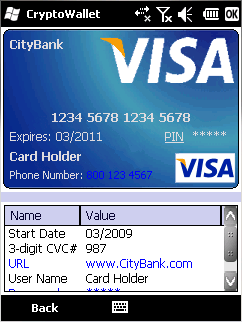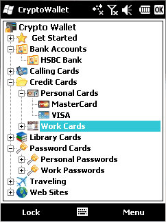 Crypto Wallet for Windows Mobile là công cụ mạnh mẽ và rất dễ sử dụng, giúp bảo mật và quản lý dữ liệu. Hãy để trí óc của bạn được giải thoát từ những con số và thông báo không thể đếm được. Crypto Wallet sẽ giúp bạn sắp xếp gọn gàng và cho phép tìm kiếm nhanh chóng thông tin quan trọng, bao gồm tên người dùng, mật khẩu, thẻ tín dụng, thẻ gọi điện thoại, tài khoản ngân hàng, mã PIN,...