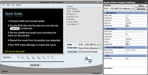 Bên cạnh đó, phần mềm này cũng hỗ trợ chuyển đổi trực tiếp DVD sang PSP. Một số phần mềm khác cần 2 bước chuyển đổi: từ DVD sang AVI và từ AVI sang định dạng PSP hỗ trợ, rất tốn thời gian. Phần mềm này chỉ cần một bước chuyển đổi, trực tiếp từ DVD sang PSP. Từ đó, tốc độ chuyển đổi của phần mềm này nhanh hơn nhiều so với các phần mềm khác.