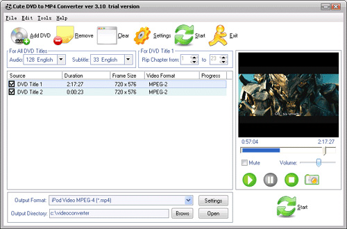 Cute DVD to MP4 Converter giúp bạn dễ dàng chuyển đổi đĩa DVD. Sau đó, bạn có thể thưởng thức các bộ phim và video trên thiết bị xách tay như ipod, iphone, điện thoại, Zune player, máy chạy MP4 và các thiết bị khác.
