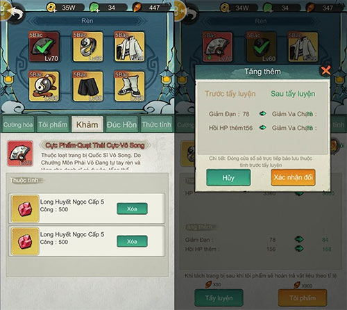Chỉ số của trang bị cũng có thể được cải thiện nhờ vào tính năng Rèn, cùng với Cường Hóa, Tôi Phẩm, Khảm, Đúc Hồn và Thức Tỉnh trang bị để đạt sức mạnh cao nhất.