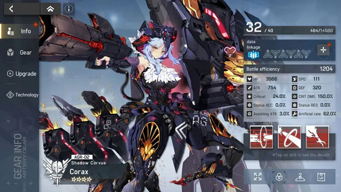 Corax có thể tự cấp cho mình kỹ năng tàng hình với Ultimate Skill, giúp cô ấy không bị nhắm mục tiêu và giảm lượng sát thương phải nhận từ các cuộc tấn công AOE. Ultimate Skill của AG này cũng gây choáng cho kẻ địch nếu chúng không sở hữu khả năng miễn nhiễm.