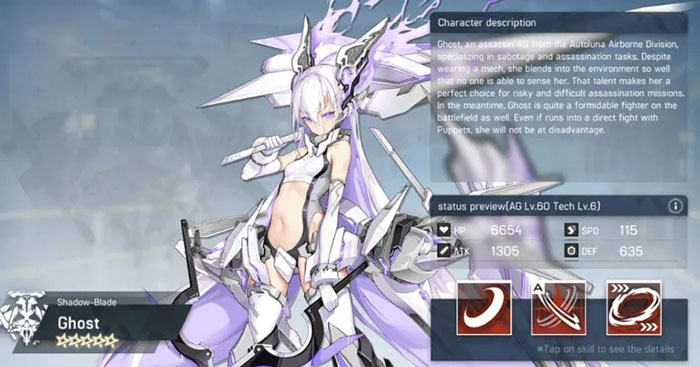 Bộ kỹ năng của Ghost khiến cô ấy trở thành một lựa chọn tốt cho bất kỳ mục đích chiến đấu nào, có thể loại bỏ các hiệu ứng buff và khiến kẻ thù đứng yên. cho kẻ thù. Ultimate Skill của Ghost cực kỳ mạnh mẽ và gây nhiều sát thương hơn nếu kẻ địch có buff, đồng thời vô hiệu nó sau khi tung ra đòn tấn công.