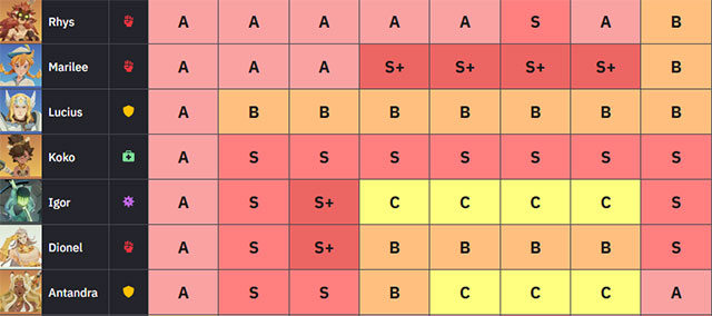 Anh hùng giỏi nhất trong trò chơi hiện tại là Reinier. Anh ta xuất sắc trong mọi chế độ chơi.