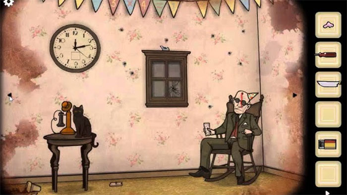 Căn phòng có một chiếc đồng hồ quả lắc, một nhà bếp và một lò sưởi. Con vẹt Harvey đang có tâm trạng tồi tệ. Mọi người sẽ bắt đầu thu thập vật phẩm, khám phá môi trường xung quanh và nhanh chóng nhận ra có điều gì đó không ổn