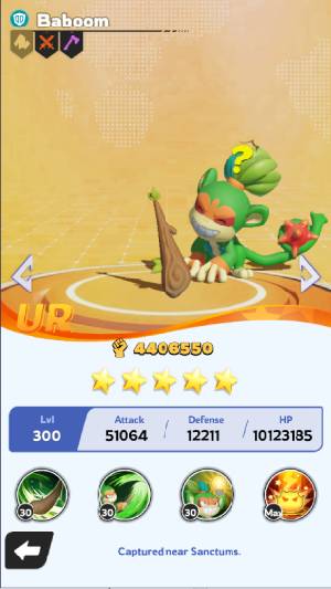 Baboom là Palmon nguyên tố Đất có độ hiếm 5 sao, thuộc loại Tấn công (Attack).