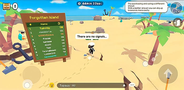 Bước 2: Sau đó nhân vật sẽ được chở đến hòn đảo này, ngay tại đây người chơi sẽ thấy những người khác đang tụ tập để đào kho báu trên hòn đảo này. Chọn biểu tượng cái xẻng ở góc trên bên trái.