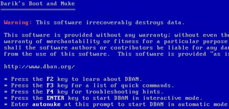 Tuy nhiên, những cách thực hiện này thông qua định dạng lại ổ đĩa là không an toàn, bởi nó vẫn có thể thực hiện thông qua các giải pháp khôi phục cao cấp. Do đó, bạn cần nhờ đến một công cụ xóa dữ liệu an toàn trên đĩa cứng. Hiện có rất nhiều các công cụ thực hiện điều này, có phí cũng như miễn phí, trong đó công cụ miễn phí dưới đây là Darik's Boot And Nuke (DBAN) sẽ giúp bạn thực hiện điều này.