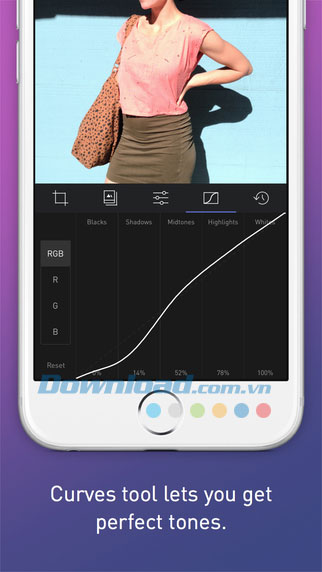 Đây là một tùy chọn mất phí trong Darkroom với mức giá $2.99. Bạn sẽ tạo ra những tông màu hoàn hảo nhất cho ảnh với khả năng truy cập vào các kênh màu RGB thô.