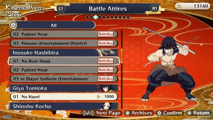 | Inosuke Hashibira, Kimono (Entertainment District) | Thưởng bản Deluxe Edition | 1000 |