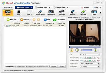 Dicsoft Video Converter Platinum là giải pháp hoàn chỉnh để chuyển đổi video thành nhiều định dạng khác nhau như RMVB, RM, 3GP, DivX, MP4, XviD, MOV và trích xuất âm thanh từ các file video để sử dụng trên nhiều thiết bị phát kỹ thuật số.