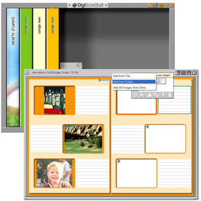 DigiBookShelf có thể hiển thị và quản lý những bức ảnh trong album ảo bằng cách sử dụng trình giao diện bookshelf ảo (xử lý ảnh trực tiếp trên web). Những bức ảnh được hiển thị dưới dạng thumbnails và bạn có thể thêm những dòng ghi chú hoặc âm thanh để chú giải cho mỗi ảnh.