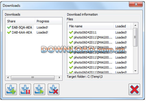 Để quản lý quá trình download, bạn kích chuột phải lên biểu tượng phần mềm, chọn Downloads. Từ hộp thoại hiện ra, danh sách các quá trình đang download, tỉ lệ % hoàn thiện, danh sách các file của quá trình download… sẽ được hiển thị. Tại đây, bạn cũng có thể nhấn chọn để tạm ngưng quá trình download và tiếp tục khi cần thiết.