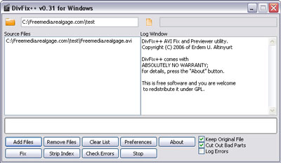 Phần mềm miễn phí DivFix++ giúp kiểm tra và sửa lỗi những file video định dạng AVI bằng cách tạo lại index cho file đó.