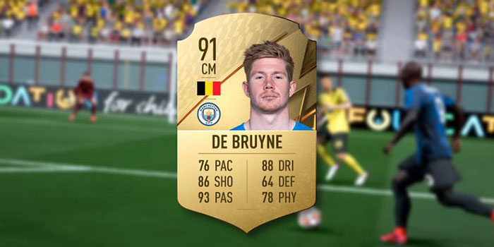 Thẻ của De Bruyne trong FIFA 22 vẫn rất ấn tượng với chỉ số sút 86, chuyền bóng 93 và rê bóng 88 đưa anh ấy lên hàng đầu trong số các tiền vệ trung tâm. Cầu thủ này cũng dễ dàng phù hợp với đội hình xuất phát tốt nhất.