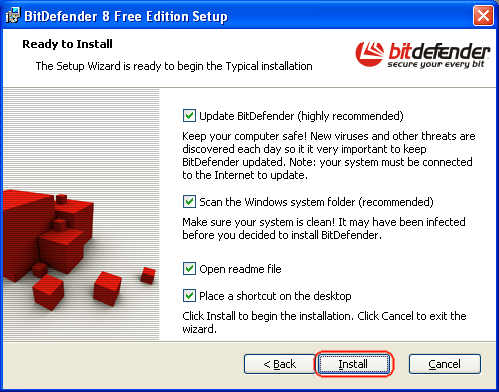 Bitdefender Antivirus Free Edition 8.01. Sau khi bạn tải chương trình BitDefender 8 Free Edition về máy, click đúp vào chương trình đó để bắn đầu cài đặt, xuất hiện màn hình: