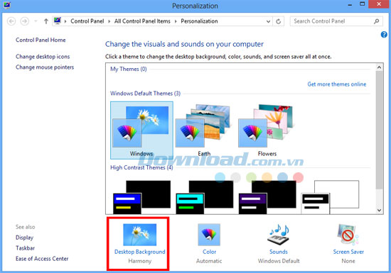 Bước 2: Tiếp theo, một cửa sổ nhỏ sẽ hiển thị, vui lòng nhấn nút Desktop Background.