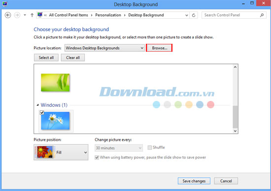 Bước 3: Nhấn Browse để duyệt thư mục chứa hình nền. Sau đó, đánh dấu vào các bức ảnh mà bạn muốn đặt làm hình nền.