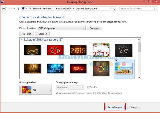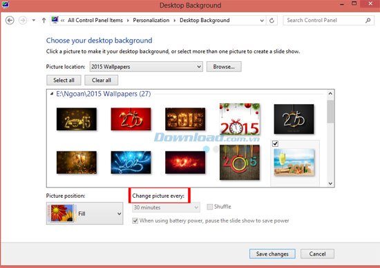 Bước 4: Truy cập danh mục Change Pictures Every để thiết lập khoảng thời gian chuyển tiếp giữa các hình nền.