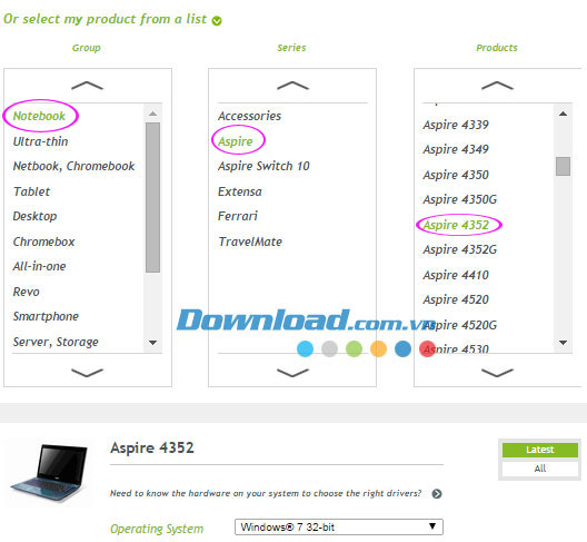 hoạc nhập Product Model của máy: Acer Aspire 4352