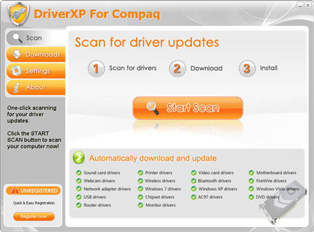 DriverXP for Compaq sẽ download cho bạn đúng driver mà phần cứng Compaq của bạn cần. DriverXP for Compaq có tỉ lệ thành công 100% trong việc nhận ra tất cả phần cứng Compaq được sản xuất từ năm 1996. Kết quả từ quá trình quét hệ thống của bạn được so sánh với cơ sở dữ liệu driver của DriverXP, và đưa ra cho bạn driver tốt nhất có thể cho phần cứng của mình.