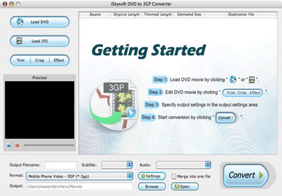 iSkysoft DVD to 3GP Converter là tiện ích có thể chuyển đổi DVD thành file 3GP để có thể copy lên các máy cell phone hoặc các loại điện thoại đi động để thưởng thức.