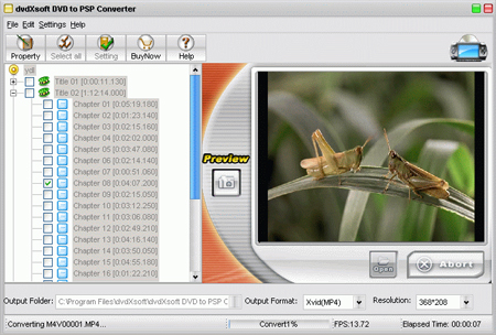 dvdXsoft DVD to PSP Converter có nhiều tính năng hữu hiệu như chuyển đổi DVD với tốc độ cao nhất, chất lượng tốt nhất đã được kiểm nghiệm trên hàng trăm đĩa DVD khác nhau. Theo những thử nghiệm của nhà sản xuất, DVD to PSP Converter hoạt động rất trơn tru trên tất cả các DVD-ROMs đưa ra kiểm nghiệm. DVD to PSP Converter dành cho người sử dụng nhiều lựa chọn trong việc chuyển đổi, bao gồm việc lựa chọn các codecs, các độ phân giải , bitrates video và audio, tần số âm thanh khác nhau.