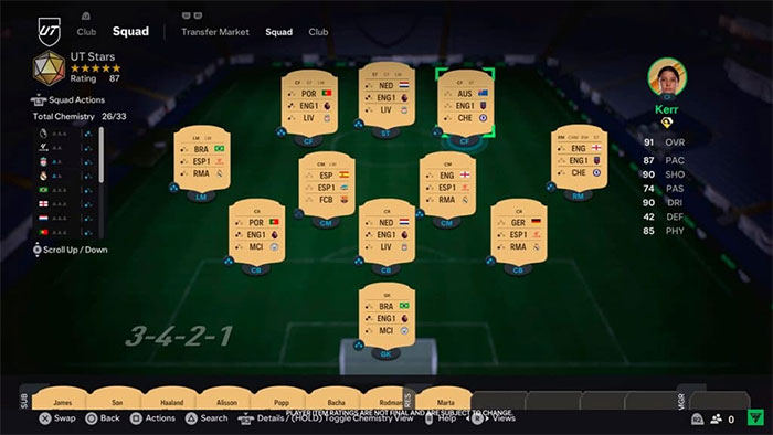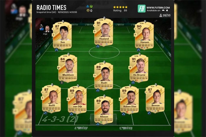Trong đội hình ví dụ đây, chỉ mất vài phút để tập hợp các cầu thủ xếp hạng 5 sao, với sự ăn ý là 28/33 và một số cầu thủ giỏi nhất hiện có ở mọi vị trí.