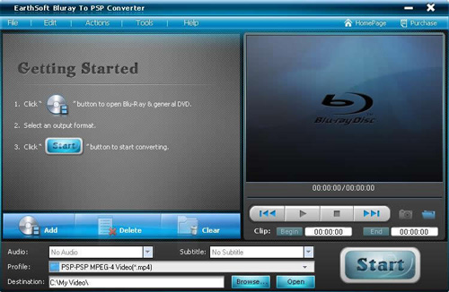 EarthSoft Bluray To PSP Converter có thể giúp bạn chuyển đổi đĩa DVD và Bluray sang định dạng được thiết bị PSP hỗ trợ như PS3 (1080P) MPEG-4, PS3 (720P) MPEG-4, PS3 (480P) MPEG-4, PSP-PSP MPEG-4, PSP AVC, PSP (480P) MPEG-4, PSP MP3,...