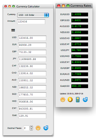 Chương trình bao gồm 2 tiện ích nhỏ gọn: một cửa sổ nhỏ gọn trên nền desktop hiển thị tỉ giá tiền tệ liên tục cập nhật, bảng công cụ chuyển đổi các đơn vị tiền phổ thông trên thế giới. Hỗ trợ hơn 100 đơn vị tiền trên toàn thế giới, và 4 loại kim loại quý hiếm: vàng, bạc, bạch kim và paladi.