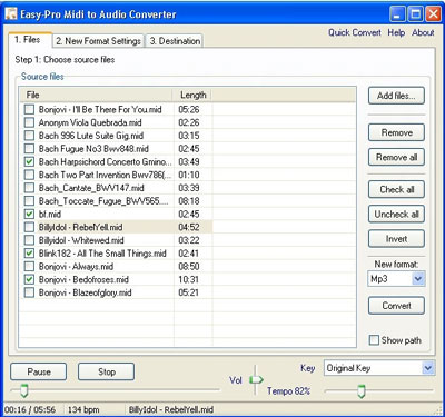 Easy-Pro Midi to Audio Converter là một tiện ích để chuyển đổi Midi files sang định dạng WAV, MP3, OGG, WMA. Nó chuyển đổi nhanh chóng , chất lượng cao và là ưu điểm của phần mềm. Việc chuyển đổi Midi tới định dạng WAV cho phép bạn tạo CD audio một cách dễ dàng mà có thể được chơi trong bất kỳ đầu phát dân dụng nào hoặc dùng trong những thiết bị di động như ipod , Mp3 player và những điện thoại di động.
