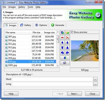 Easy Photo Gallery Website là một trình tạo album ảnh trên web dễ sử dụng. Chương trình này sẽ cho phép bạn tạo phòng trưng bày chuyên nghiệp của tất cả ảnh của bạn trên Internet, mà không cần bất cứ kiến thức về HTML nào hoặc bất kỳ loại code khác.
