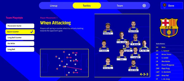 Hãy huấn luyện cầu thủ để họ quen cả hai chiến thuật Possession Game và Quick Counter. Dù có thể giảm một chút chỉ số, nhưng người chơi sẽ có nhiều lựa chọn chiến thuật hơn tùy theo đối thủ.