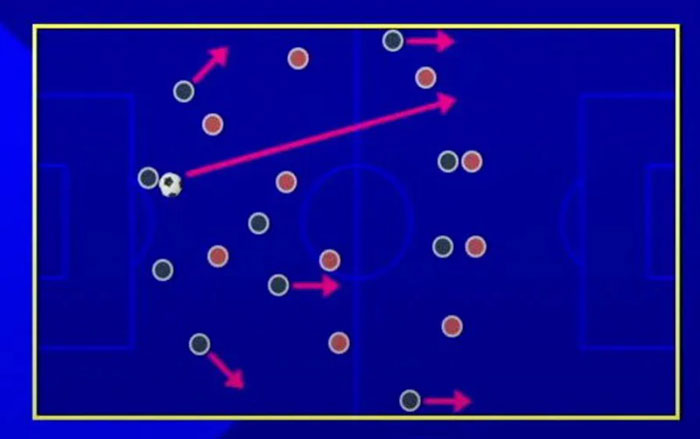 Các cầu thủ sẽ liên tục tạt để tạo cơ hội cho cầu thủ khác chạy ra phía sau tuyến sau của đối thủ để tìm cơ hội. Vì vậy, cần phải tung vào sân một tiền đạo có nhận thức tấn công, tốc độ và khả năng kiểm soát bóng cao để không bị việt vị và quản lý bóng tốt. Phòng thủ cũng rất quan trọng, vì vậy cần có những cầu thủ cao hơn để ngăn chặn những quả tạt đó.