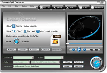 Emicsoft 3GP Converter cho phép cắt xén độ dài tập tin, cắt theo tỷ lệ cạnh, điều chỉnh các hiệu ứng chơi, thêm hình mờ, nối nhiều tập tin và chụp ảnh màn hình.
