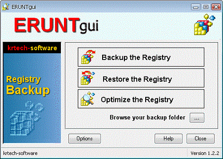 ERUNTgui là phần mềm tối ưu hoá hệ thống đăng ký dễ sử dụng. ERUNTgui là giao diện người dùng đổ họa phổ biến cho lưu trữ dự phòng và phục hồi chương trình "ERUNT" được tạo bởi Lars Hederer.