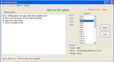 Exam Mix 2.0 phiên bản mới còn hỗ trợ thêm phần dạng câu hỏi tùy chỉnh (lên đến tối đa 8 câu trả lời với số lượng đáp án tùy chọn), ngoài ra còn có thêm tính năng hỗ trợ thi thử và xem kết quả ngay trên ứng dụng.