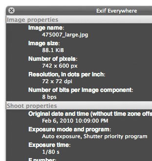 Exif Everywhere là một Plugin dành cho Safari, tiện ích mở rộng đối với trình duyệt firefox và một ứng dụng độc lập được dùng để hiển thị lý lịch dữ liệu Exif, định vị GPS và các tùy chỉnh khác đối với ảnh định dạng JPEG, TIFF và RAW. Phần mềm này thực sự tiện ích đối với các chuyên gia nhiếp ảnh: dù là chuyên nghiệp hay mới bắt đầu vào nghề, họ đều có thể biết được cách chụp ảnh.