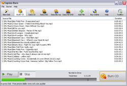 Express Burn là một tiện ích ghi đĩa CD trên Windows dễ sử dụng cho phép bạn tạo ra các CD nhạc (audio) hay dữ liệu (data) chỉ với thao tác kéo và thả (drags & drops) các tập tin hay thư mục vào biểu tượng của chương trình. Việc tiếp theo là bạn bấm vào nút “Burn CD” và Express Burn sẽ tự động thực hiện tiếp phần chuyển đổi còn lại cho bạn.