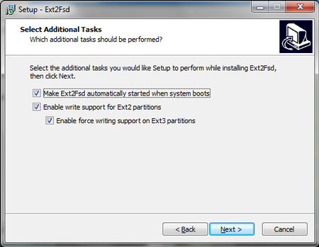 Sau một thời gian tìm hiểu các chương trình để truy xuất vào phân vùng ext2/ext3 và thử qua như DiskInternals Linux Reader, Ext2 Installable File System For Windows, Explore2fs,... Cuối cùng tác giả tìm được phần mềm ưng ý nhất đó là Ext2Fsd 0.50. Khác hoàn toàn với DiskInternals Linux Reader và Explore2fs chỉ cho phép đọc nội dung của phân vùng ext2,ext3 thì Ext2Fsd cung cấp khả năng rất mạnh hỗ trợ cả đọc và ghi. Ext2 Installable File System For Windows cũng hộ trợ đọc và ghi nhưng lại không hỗ trợ cho Windows 7.