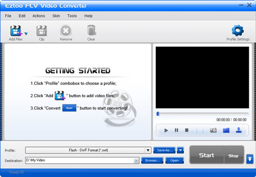 Với tính năng chạy video được tích hợp sẵn trong Eztoo FLV Video Converter, bạn có thể xem trước video trước khi chuyển đổi. Trong thời gian xem trước, bạn có thể tạo snapshot và lưu chúng theo định dạng JPG, BMP, GIF, PNG từ video, xác định thời gian bắt đầu và kết thúc mỗi khi muốn cắt các phần từ video.