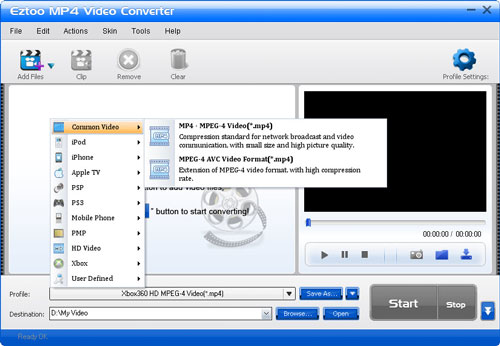 Với Eztoo MP4 Video Converter, bạn có thể chuyển đổi video với chất lượng file đầu ra cao và tốc độ thực hiện nhanh. Thưởng thức video/audio trên máy nghe nhạc MP4, PSP, điện thoại di động, iPod, iPhone ở bất kì lúc nào, bất cứ nơi đâu. Bên cạnh đó, bạn có thể cắt bất kì phần nào của các file video. Eztoo MP4 Video Converter hỗ trợ tự động tắt máy tính khi hoàn thành công việc chuyển đổi.