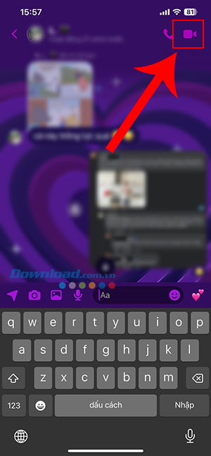 Bước 2: Nhấn vào biểu tượng gọi video ở góc trên cùng bên phải của giao diện cuộc hội thoại.