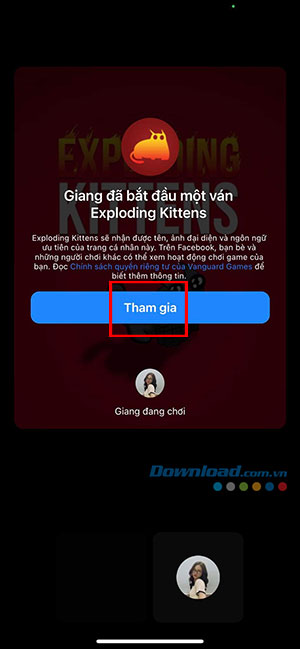 Bước 5: Sau khi bắt đầu trò chơi, mọi người trong cuộc gọi sẽ nhận được lời mời tham gia. Người đó chỉ cần nhấn vào nút Tham gia trên điện thoại của mình để chấp nhận lời mời.
