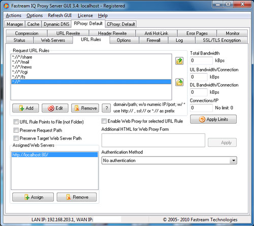 Fastream IQ Proxy Server là một giải pháp bảo vệ nội dung cho Windows. Tập trung chủ yếu vào công cụ của server với hơn 20000 kết nối giả lập cho lọc và cache nội dung proxy cũng như bảo mật và đẩy nhanh quá trình đảo proxy, có khả năng thực hiện hơn 10000 yêu cầu/giây trong chế độ keep-alive. Ngoài ra, chương trình còn hỗ trợ một trình dịch siêu liên kết trong proxy đảo để người dùng cuối của bạn có được trải nghiệm tốt nhất.
