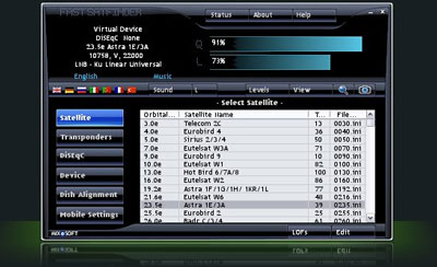 FastSatfinder là một bộ máy ảo tìm kiếm những tín hiệu từ những vệ tinh. Những thiết bị bạn cần để cho nó hoạt động không cần gì khác ngoài một bộ pc dvb-s tuner. Chương trình hỗ trợ nhiều DVB-S PC Tuners từ những nhà sản xuất khác nhau như Hauppauge, Pinnacle, TechnoTrend, TechniSat…