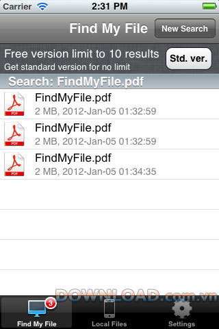 FindMyFile Free for iOS hỗ trợ người dùng tìm kiếm tài liệu trong máy tính ngay cả khi bạn quên tên file và chỉ có thông tin về số ID cá nhân.