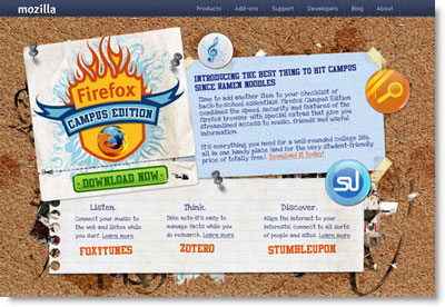 Hãng Mozilla mới đây đã phát hành phiên bản trình duyệt web Firefox Campus Edition được đặc biệt thiết kế dành cho giới học sinh, sinh viên. Trình duyệt này có thêm một số add-ons không có trong các phiên bản Firefox thông thường.